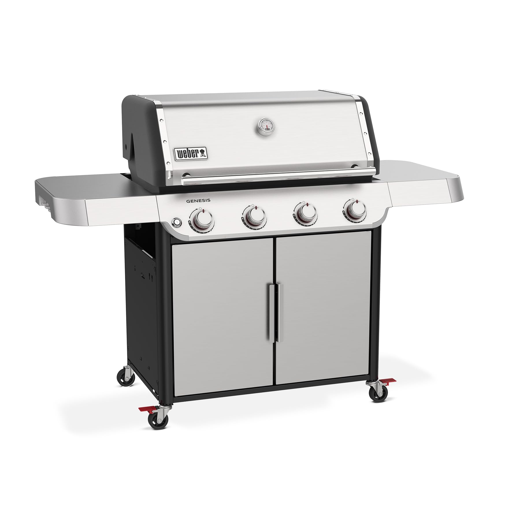 - Weber Stainless Steel Genesis Grill includes PureBlu burners with a unique, tapered design, creating a consistent flame and even heat across the grilling surface; Raised flame openings keep food debris falling away, minimizing clogs and corrosion