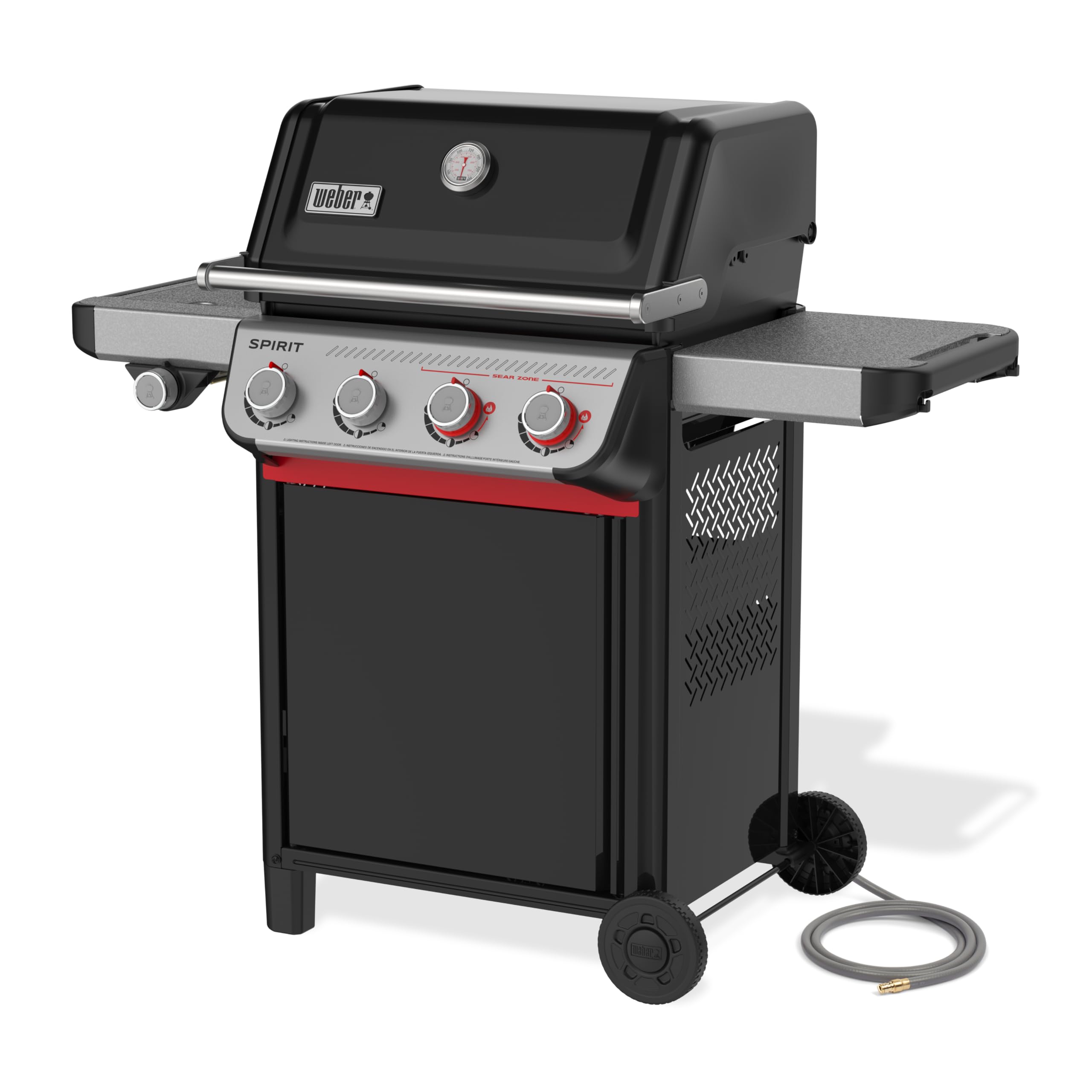 - Weber Spirit Black Grill features Boost Burners that unleash 40% more power in the largest Sear Zone in its class, cranking up the heat for bold, flavorful searing; Grill has a 10-year limited warranty